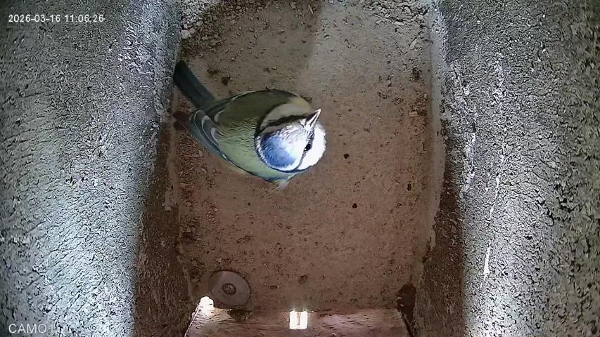 Seit den Fasnachtsferien haben wir einen Nistkasten mit Beobachtungskamera an unserer Schule angebracht. Von allen Klassenzimmern kann mit Hilfe der Kamera in den Nistkasten geschaut werden. Heute entdeckten die Drittklässler die erste Blaumeise.